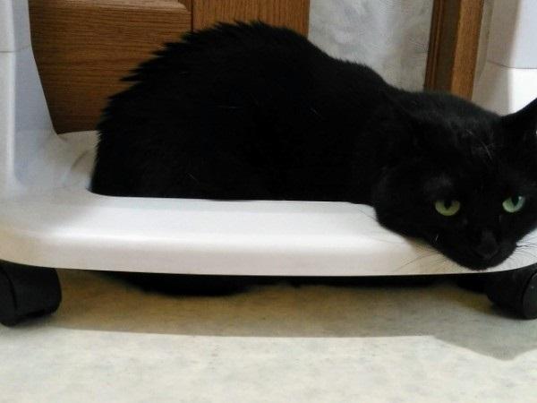 カゴを取り出したままにしておくと、いつも黒猫がハマッている