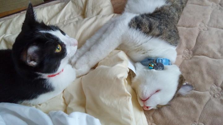 で、昼間は暑いなかリビングで寝てる4匹、、、