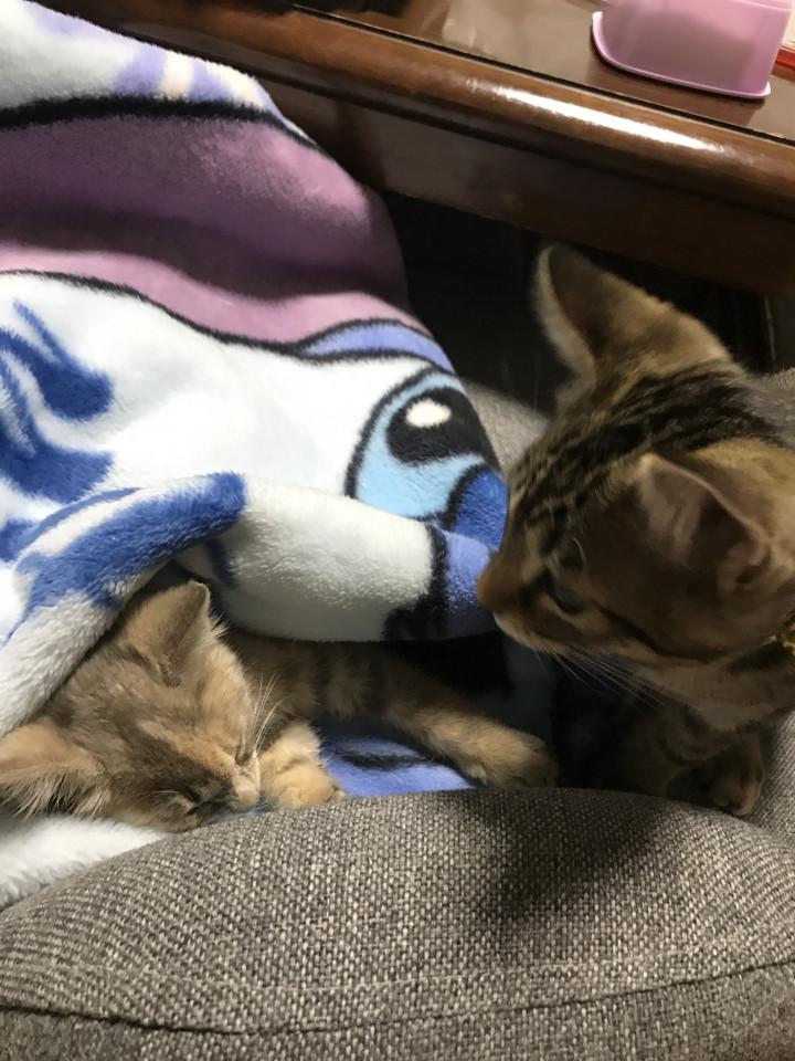 大丈夫スグ毛乾くから大人しくしてるんだよ。ってそばに居てくれた
