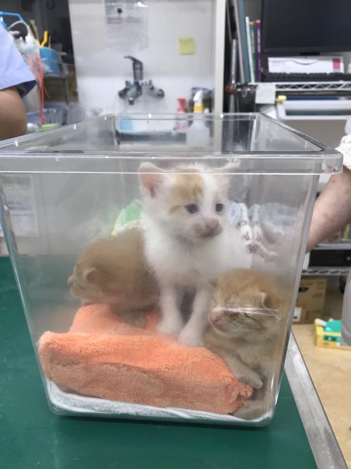 ……この子たち拾いました!って、この動物病院に新たに3にゃんが!