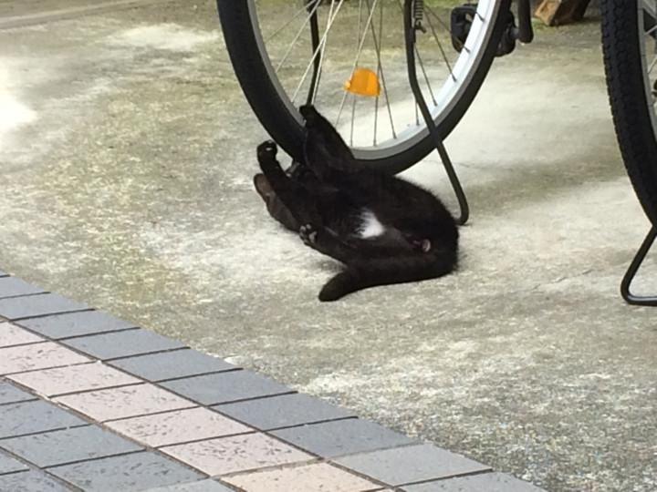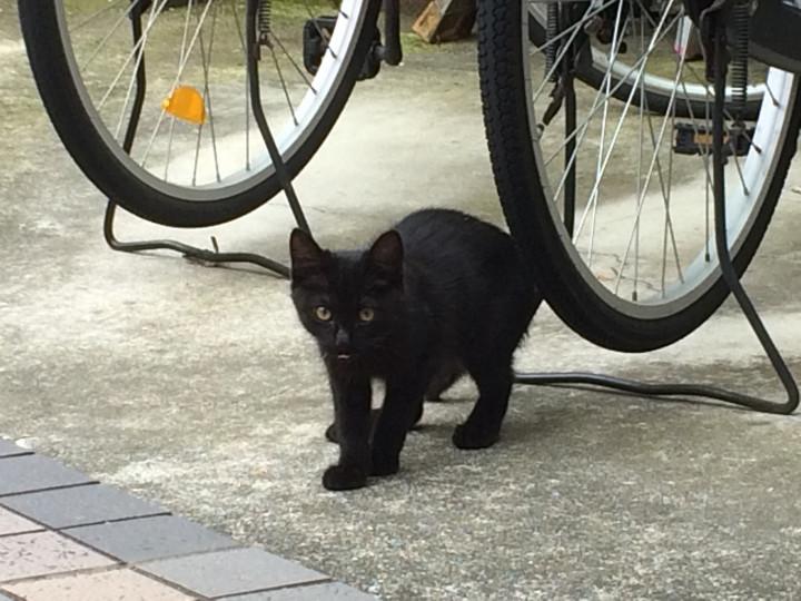 保護前から自転車の車輪にじゃれて遊ぶ黒猫ちゃん(*^_^*)