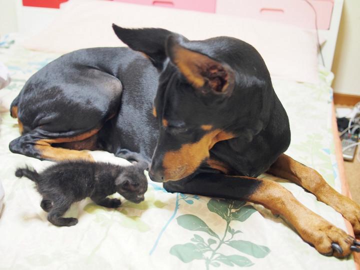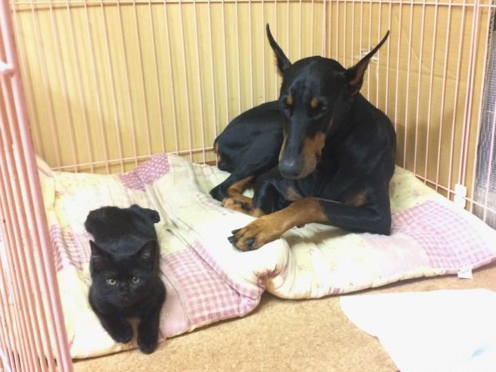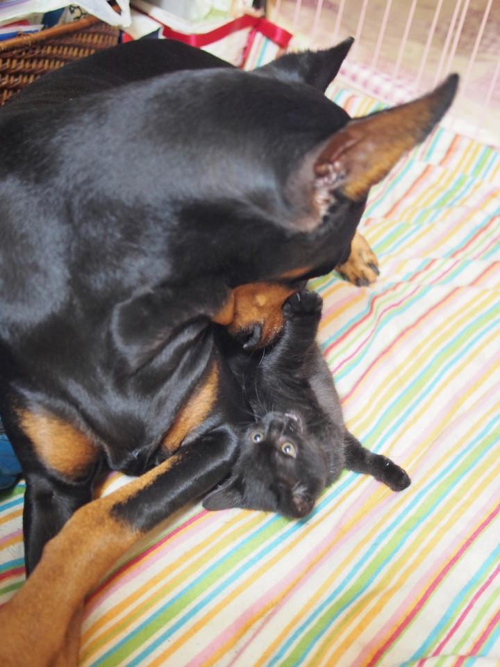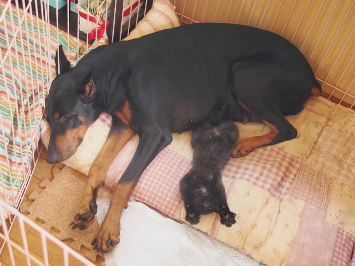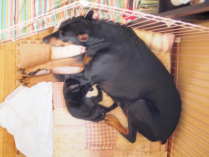 母のそばは安心するようで、よくドベ母のサークルに入って寛いでいました。