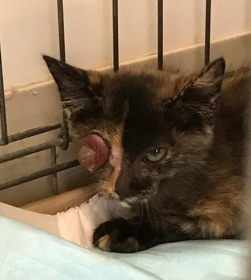 まず緊急性があるので、眼球の出た子を先に保護しました。すぐ病院へ連れていき、入院になりました。8月7日に手術です。