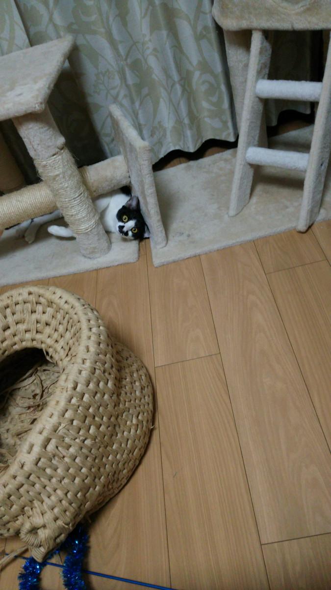 ふぅはいか耳になってタンスの上、一度降ろしたら冷蔵庫の上に非難(笑)