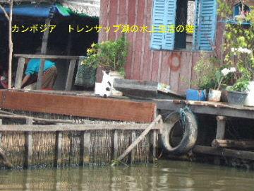 その3日目、シェムリアップから少し離れたトンレサップ湖の遊覧で水上生活を見学。そこには、「猫」がいました!!船からなのでとても小さくなってしまいましたが、どうにか写真を撮ることができました。