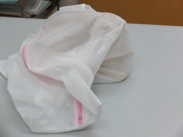 話を聞いた先生は洗濯網をそぉ~っとキャリーの中に滑り込ませ、うまい具合に網の中に入れる。