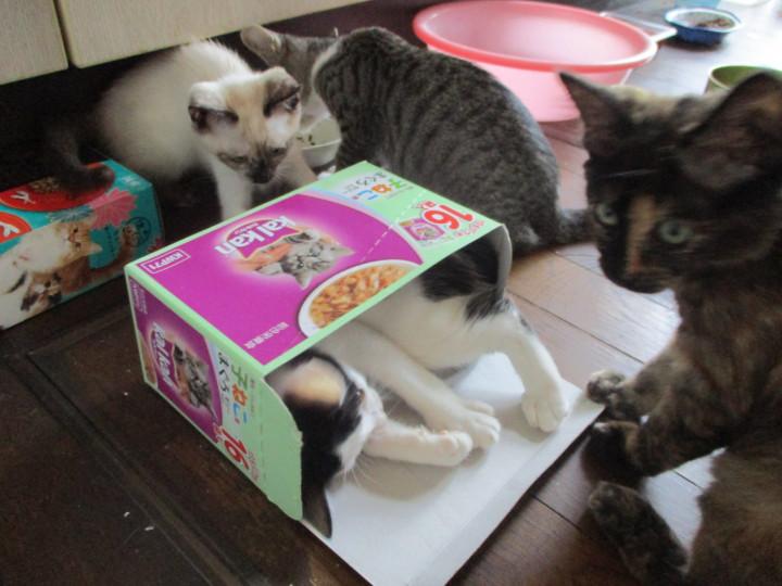 ももちゃんはカルカンパウチの箱に入ってる(笑)