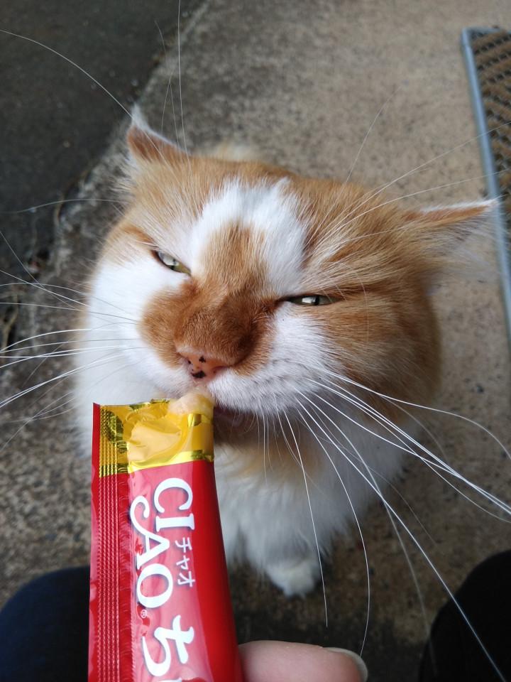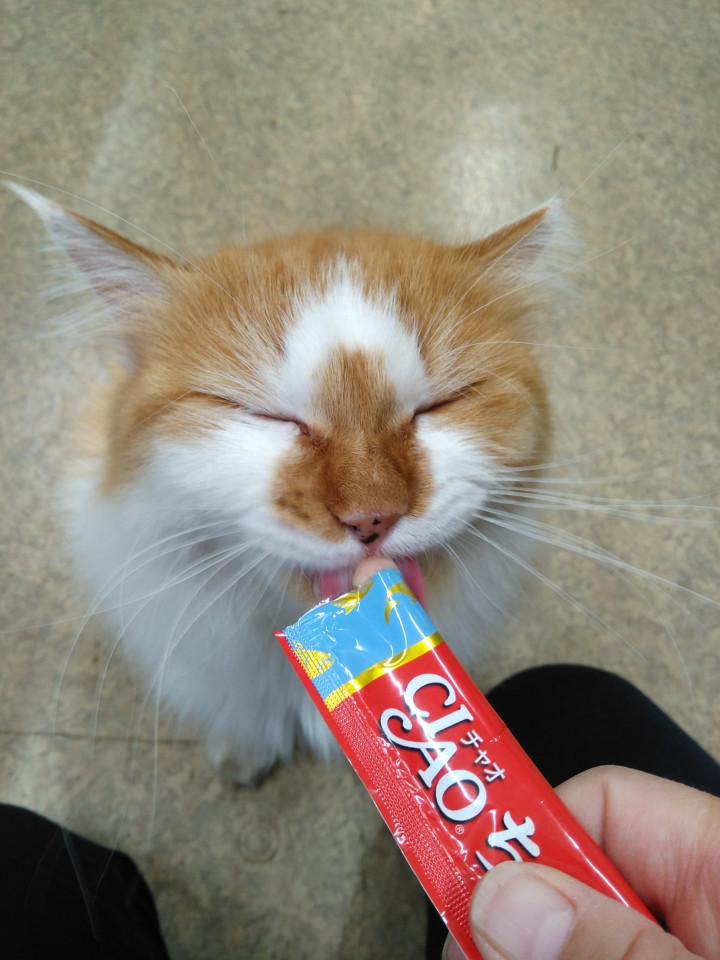 只今17時、妹さんの夕ちゅ~るタイムです♪