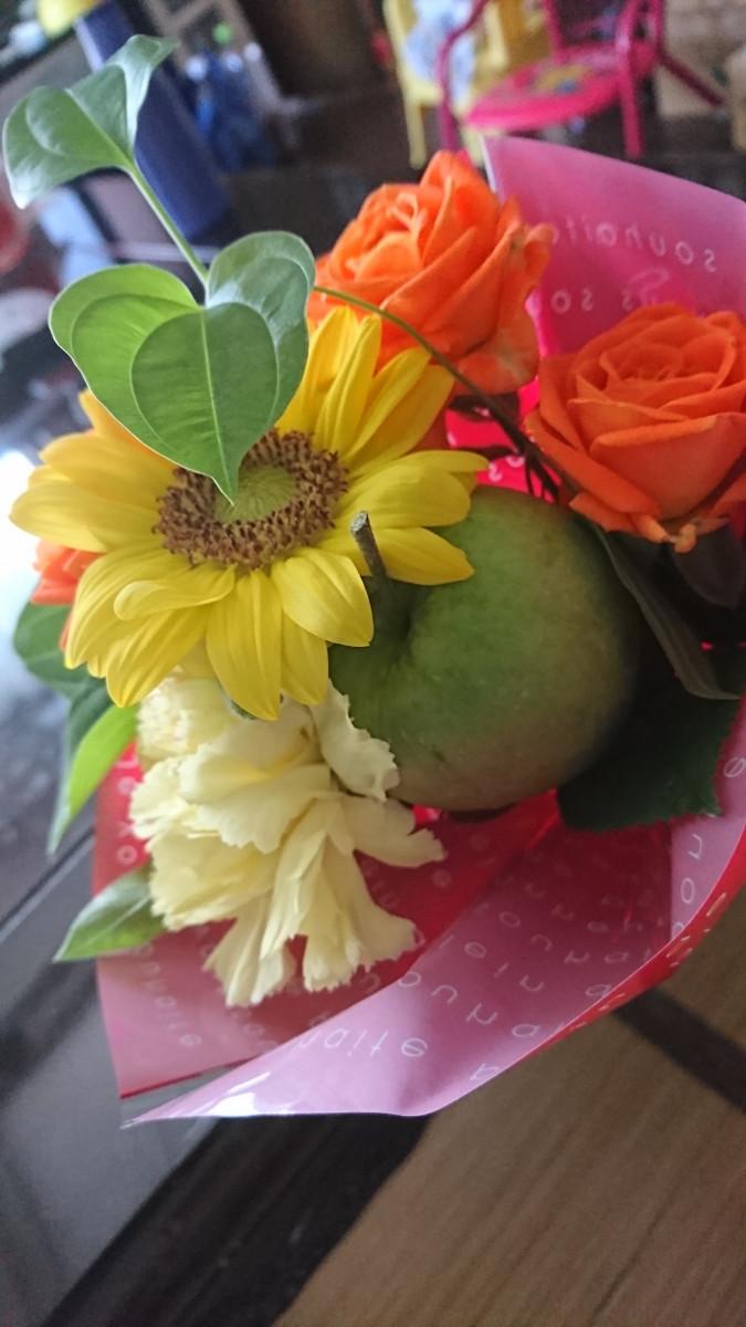 薔薇にカーネーション、ひまわりに葉っぱ?