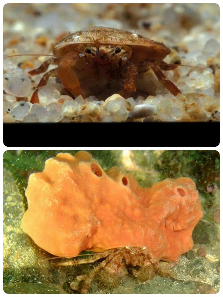 カイメンというスポンジのような生き物をそのまま住処にしているヤドカリです。