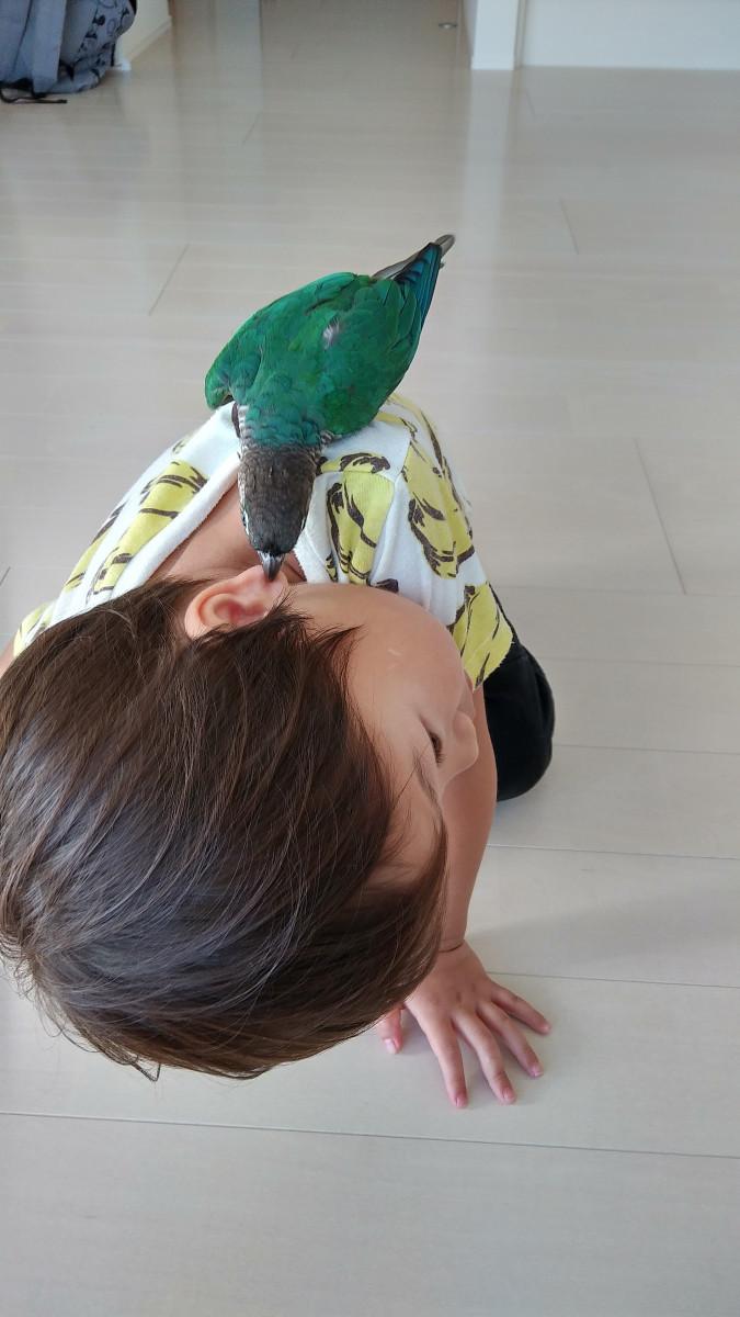 青ちゃんはペットショップに赤ちゃんを買いに行って気に入ってしまったんだって✨長くペットショップに居たから飛べないそうでずっと息子の肩に乗って気持ちいいね~とかお喋りしてて可愛かったです💕