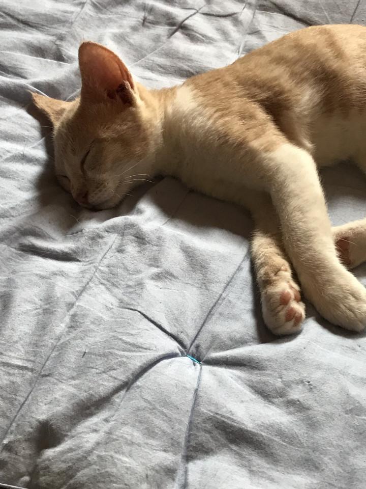 「そんなに暴れまくったら、暑いよ、汗かくよ。」(あ、猫は汗かかないか?!)と声を掛けながらも、聞いてくれる訳はなく、散々、暴れまくれば、おやすみタイムです。