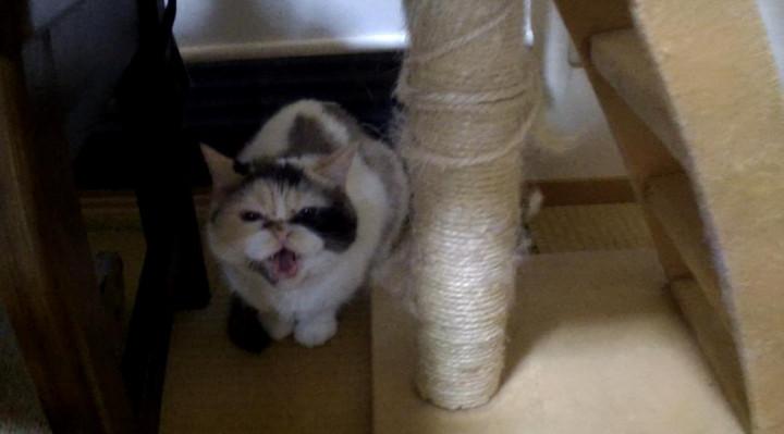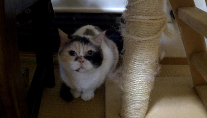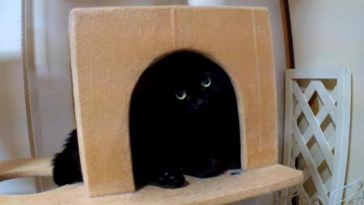 キャットタワーの、小さなお部屋には、らんちゃん。