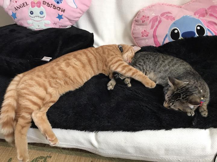 長男 カイン 2017年3月7日 茶虎 去勢済み ♂ マイクロチップ済み フード ヒルズk/d腎臓ケア 朝晩ラプロス 1日60g 次男 アベル 2017年4月22日 雉虎 去...