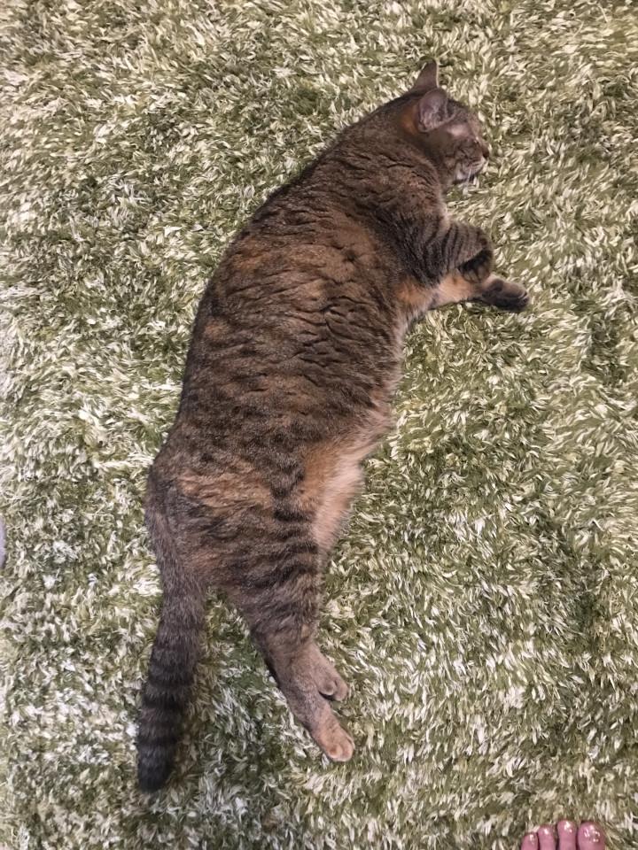 相変わらずちゃめこはビビリですが、人に撫でられるのは好きなようでお腹おっぴろげ〜でリラックスしてます