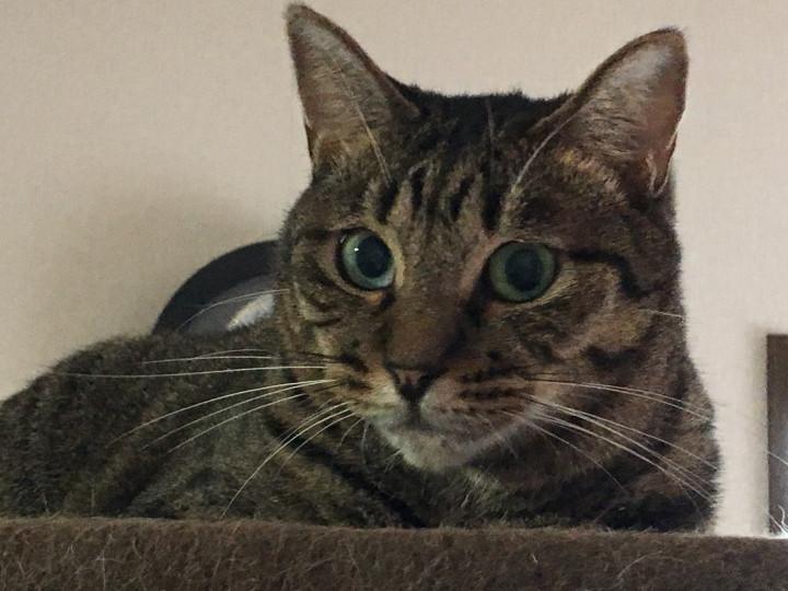 いつものように、娘の住む部屋へ行った。部屋に入って、いつもなら猫タワーからジッとみている娘が、タワーを少し降り、そばに来た。