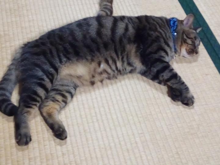すました顔で猫じゃらし咥えて私の上に鎮座するデブの濃いシマが…