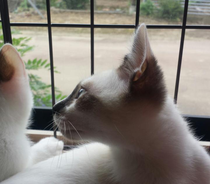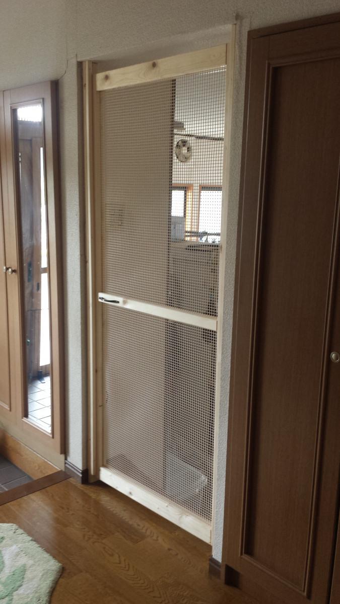 昨日パパさんがだんだん活発に動くアイルと仔太郎の脱走防止の為、網戸をDIYしてくれました。