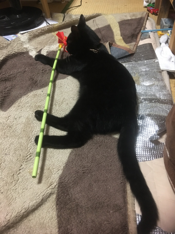 ご褒美と言ってもママ猫のダイエットがあるのでチュール一本を半分ずつだけですが…(>人<;)