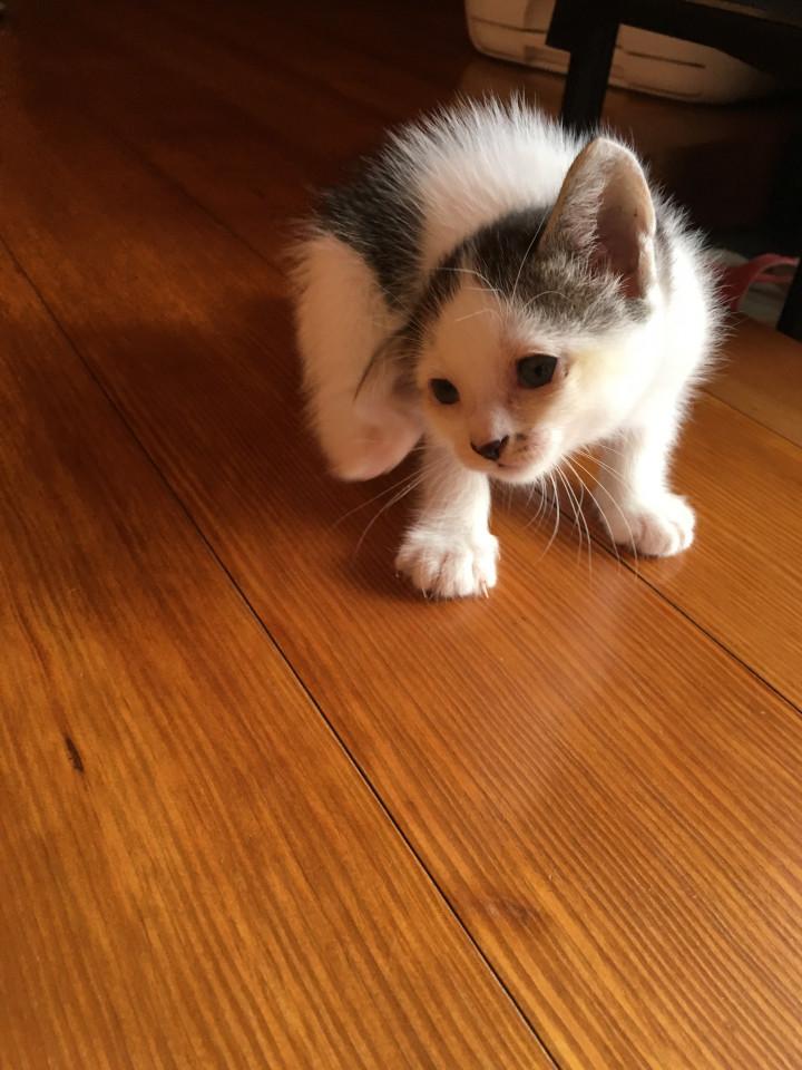 一丁前に耳をカキカキ。目のほーもだいぶ良くなったね^_^お目め、まーるまる。