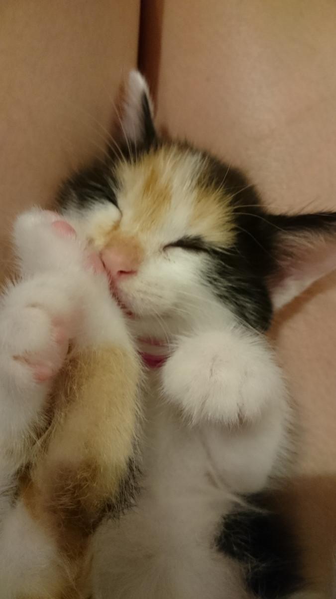 この子も86歳のおじいさんの飼ってる放し飼いの母猫から産まれて。。。里親見つからなかったら捨てるか殺すかって知り合いから聞いて少しでも命救いたいと思って引き取った子です。幸いあと2匹も知り合いが兄弟で引き取ってくれて❗みんな死なずに済みました😵💨