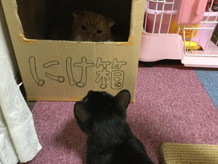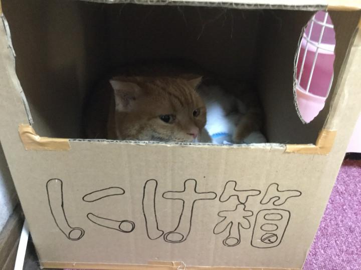 今日で4日目、にけは居間の自分のお気に入りの箱にいます。