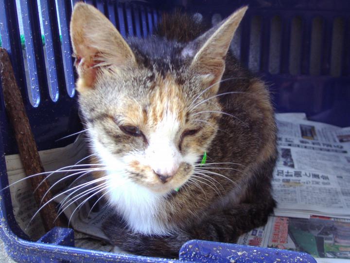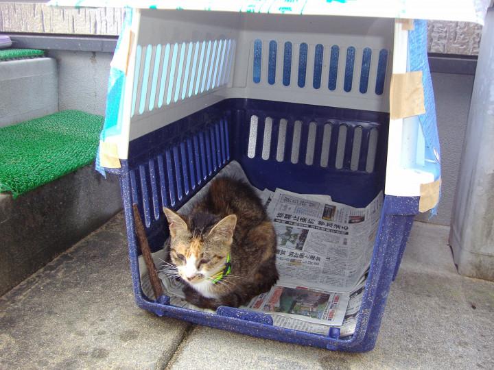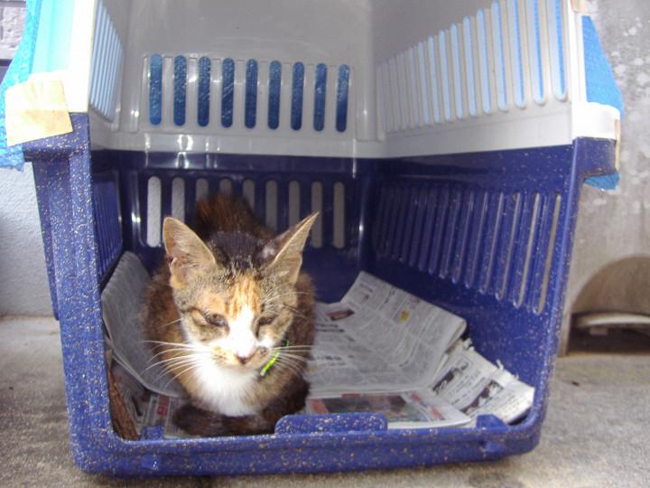 その間、みーちゃんはケージの一番奥に入っていました。