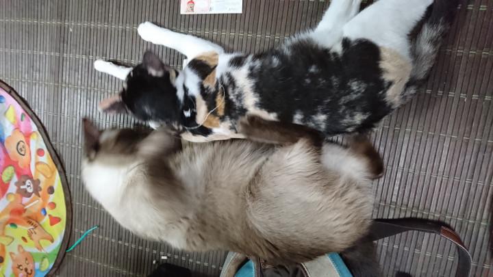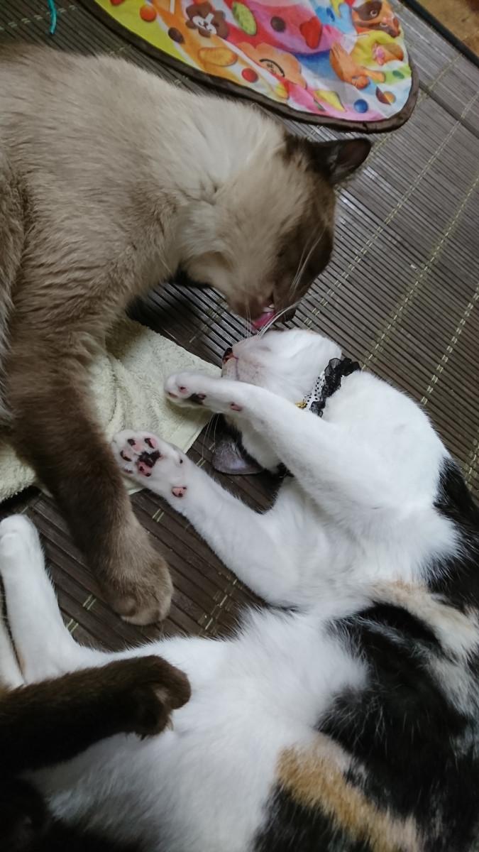激しく迷惑そうなにゃんずとテンションマックスの私と静かに見守る相方でありました。
