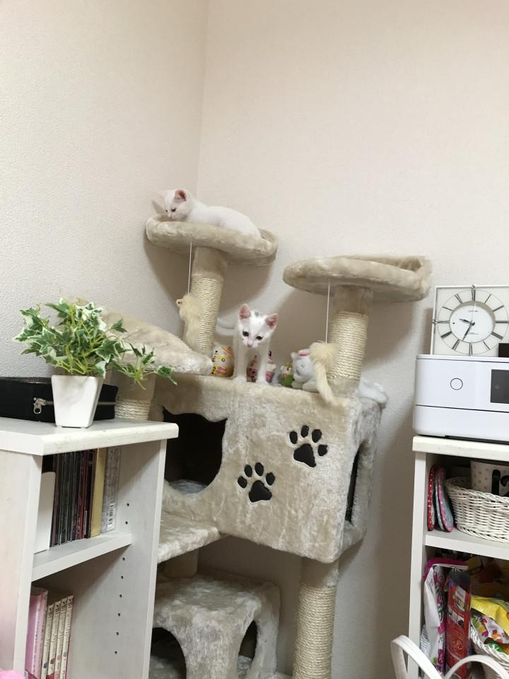 体が弱いので、辛いです。反面仔ニャンコ達は元気に育って、パワー全開で走り回っています。