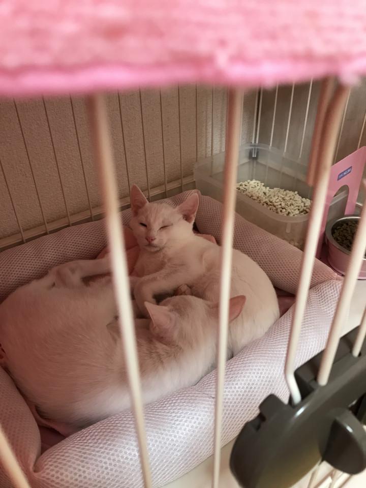 ゲージに入れるとおとなしくなって寝てしまいます。獣医さんは暴れないの?とビックリしますが、全然でくったり寝てしまいます。