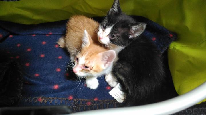 鳴きもせず、ただ2匹くっついて 震えていました。