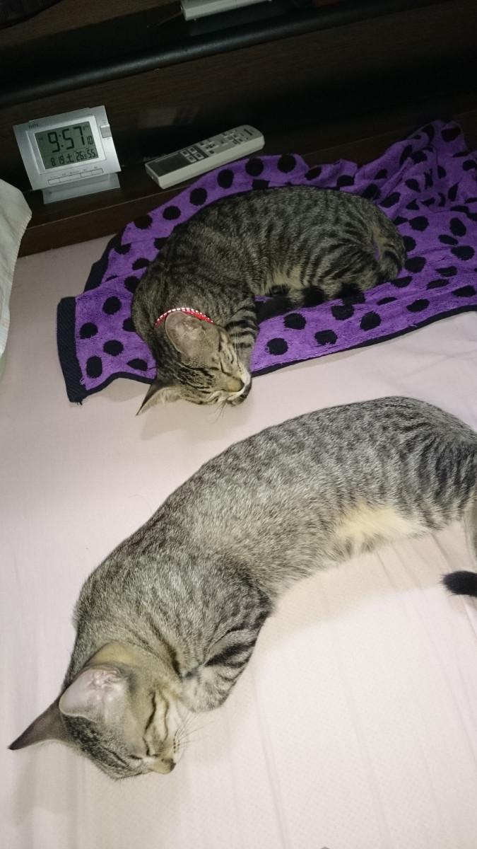 今日は休みで疲れてうとうとしていたわたし、目が覚めたらみなさんのあたたかいメッセージと…キジトラ姉妹が寄り添ってくれていて二重の喜びです。