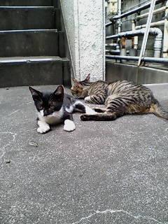 逃げた黒白猫は母猫の元にいました。キジトラ猫から黒白とキジ白の猫が生まれるんですね。