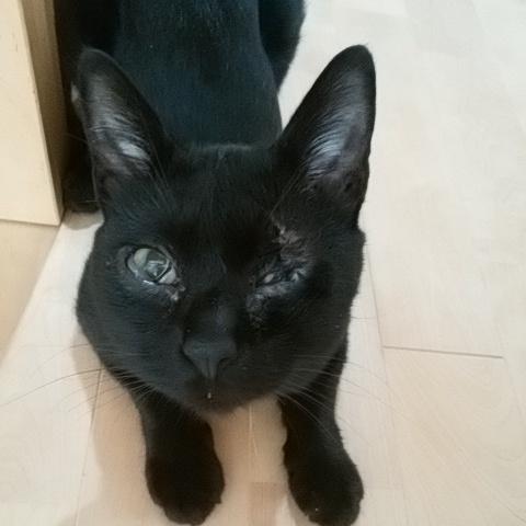 心配で心配で、里親さんにも余計な心配おかけしたくないので、黒にゃはお目目が落ち着くまで残留。
