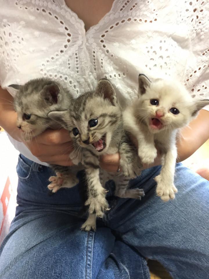 最初は去年ハチワレ猫を保護したことから猫を飼いはじめました。 このサイトでゎキジトラの姉妹をお譲りいただきました! あとは殺処分すると言ってた人がいてミケを引き取り哺乳瓶から育てて今はやんちゃすぎ...