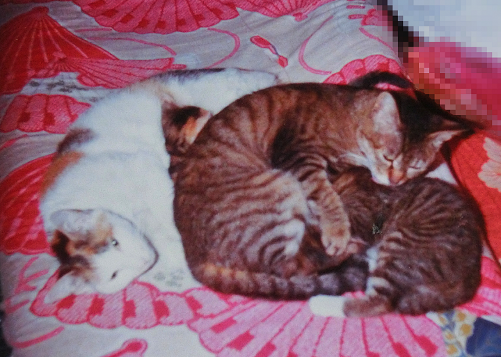2にゃんは夢の中でも仲良しで不安そうにふたり寄り添っていた。