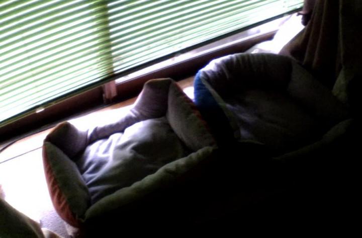 さて、お母ちゃんのお部屋の、ペットベッドにハチ君は…。