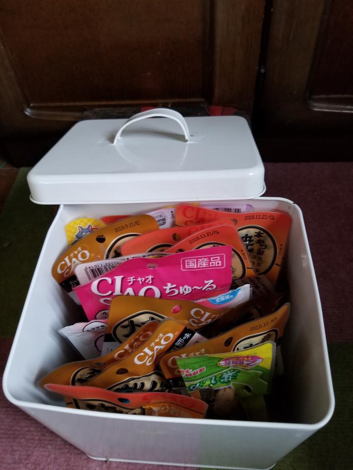 我が家は缶詰と小袋カリカリは食器棚の下スペース、扉上手に開けちゃう子が居るから重い枕木でシャットアウト~