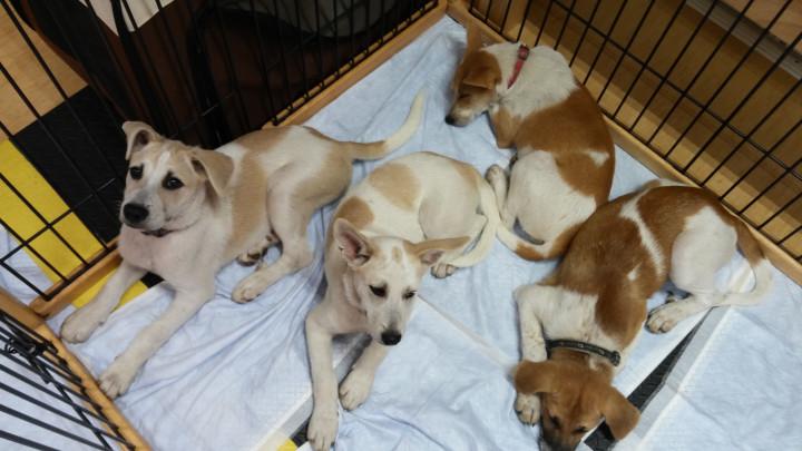 どのこも皆大人しい良い子ばかりで、保護主さんは、ママ犬を避妊して家族に迎えるそうです、しかしながら子犬4匹までは難しく、1匹は里親さまが決まりました 子犬を家族として迎えて頂ける、ずっとの家族さま募集中♥