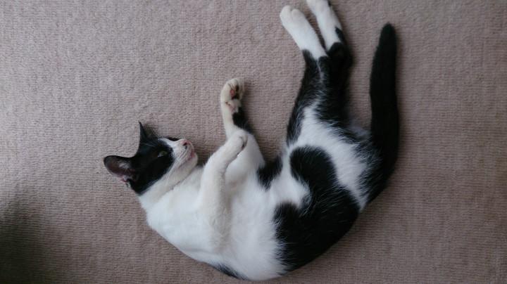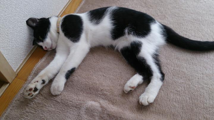 顔でふて寝ハチワレ(*ノ∀`)ノ゙))アヒャヒャ。