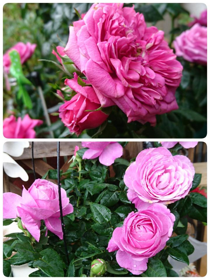 ↑上(ピンクの薔薇ですが、一つの株から3種類の花が咲きます)