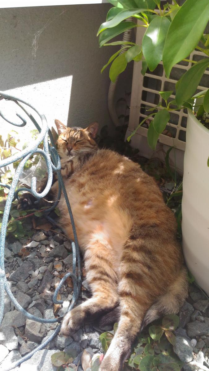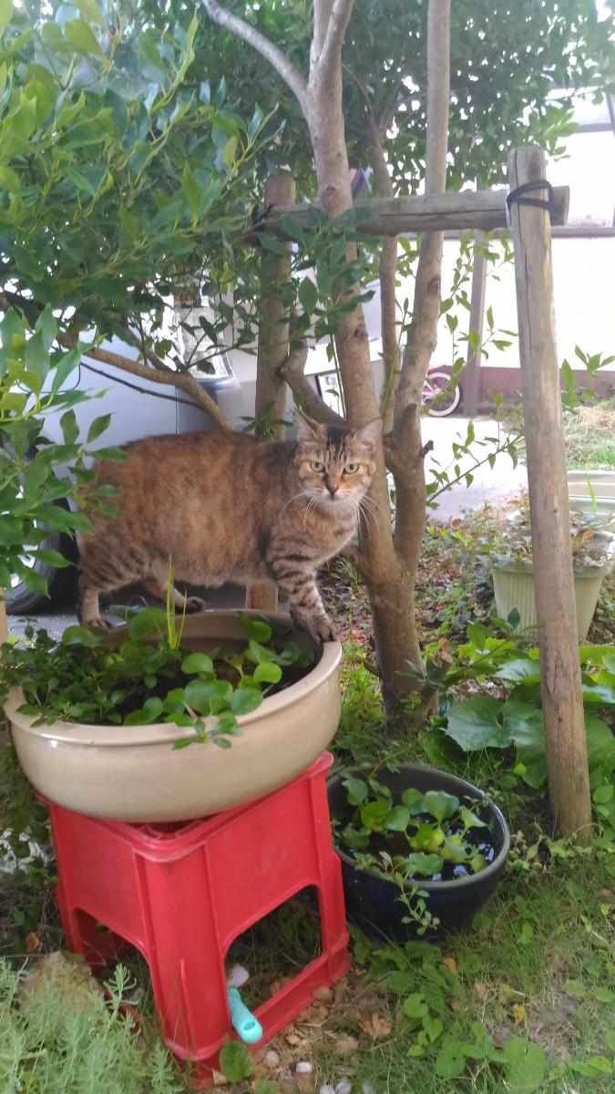 そして 外でも 桃母さんが朝ご飯を待って居ます。