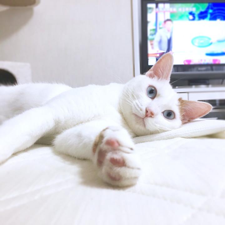 一緒に寝てやるにゃ...の図