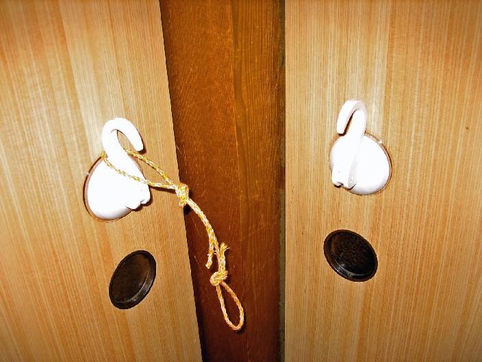 玄関へ通じる2枚の木製の引き戸を、引き戸の外側から閉めるワザ