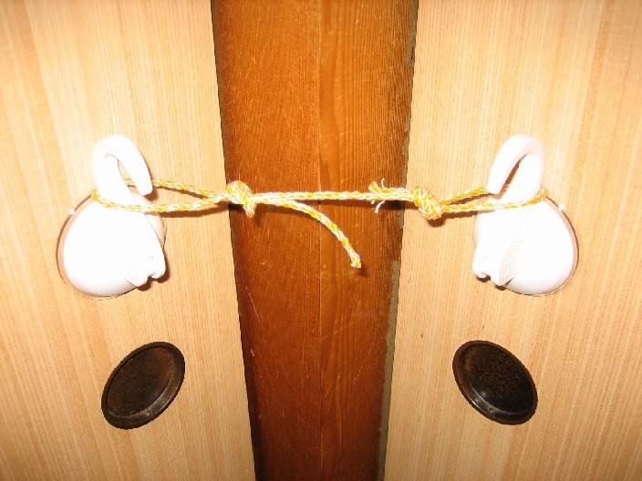 (1)木面に吸盤補助板を取り付け(この板を付けないと木戸には吸盤が取り付け出来ない)
