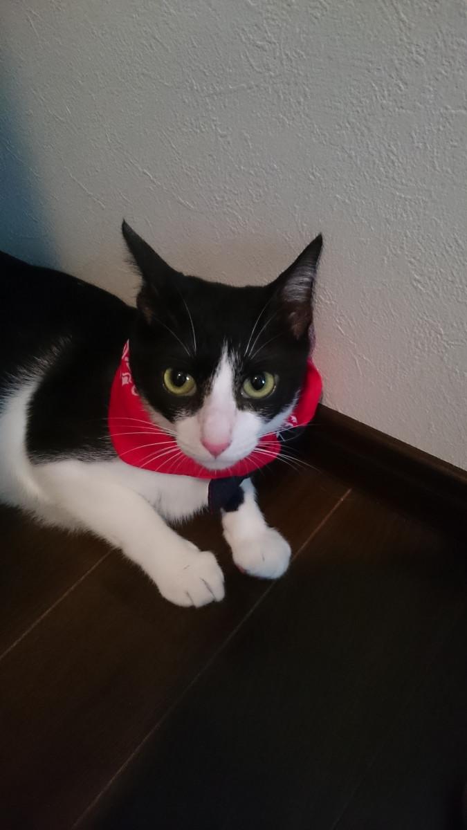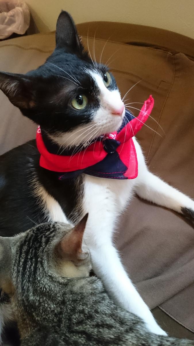 ひっかくのでバンダナを巻いたらいいと獣医に言われ巻いているのです。