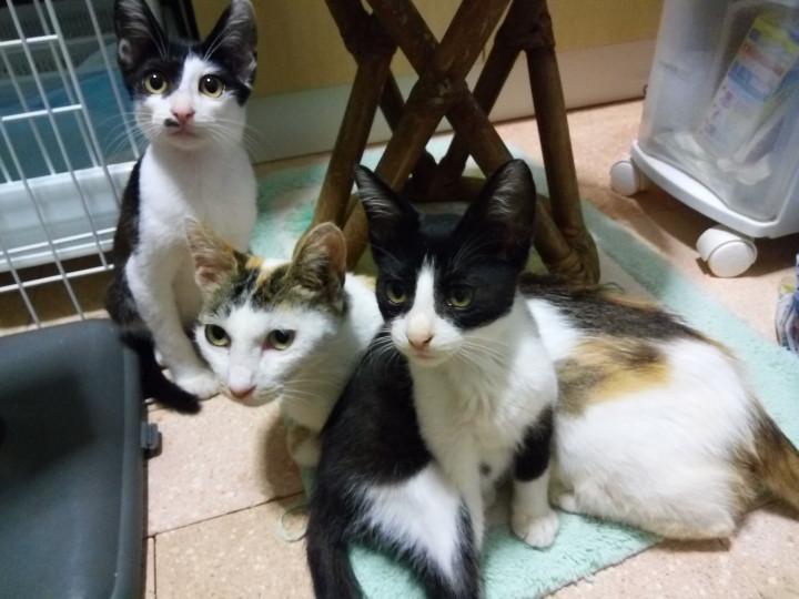 最初は、母猫が動かず具合悪そうだったので、ご飯の世話等していたら、3日ほどで元気になりました。怖かったんだね。3匹ともガリガリで、少し様子見てから、募集かけます。