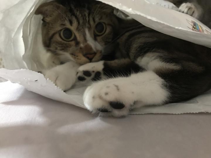 ちょびヒゲがあるかのように鼻の下に黒模様のあるハチワレさんのちょびママ。たまに実家に連れて帰った時にちょびママとハッピーをキャリー越しに会わせていたけど、お互いもうすっかり忘れているのか反応なしでした。
