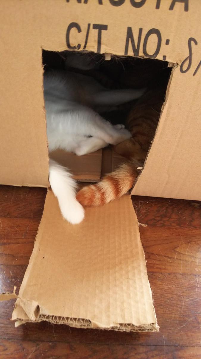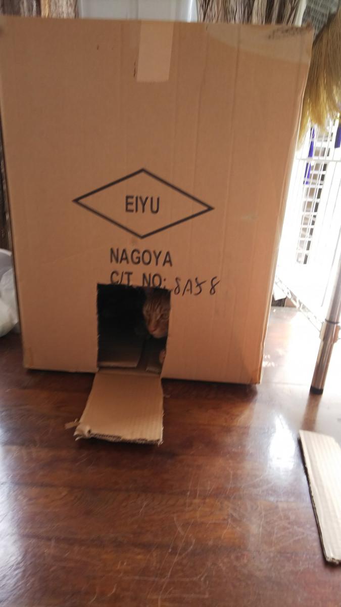 空の段ボールでにゃんずのためにハウスを作り