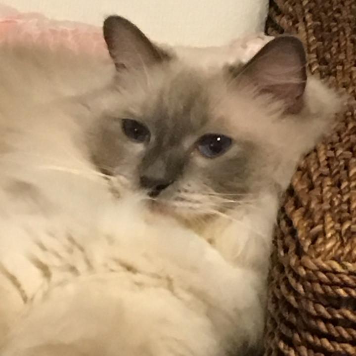 フワフワの毛長が自慢のラグドールも、この暑さでは、可哀想と、サマーカットではありませんが、ところどころにある毛玉を切りました。